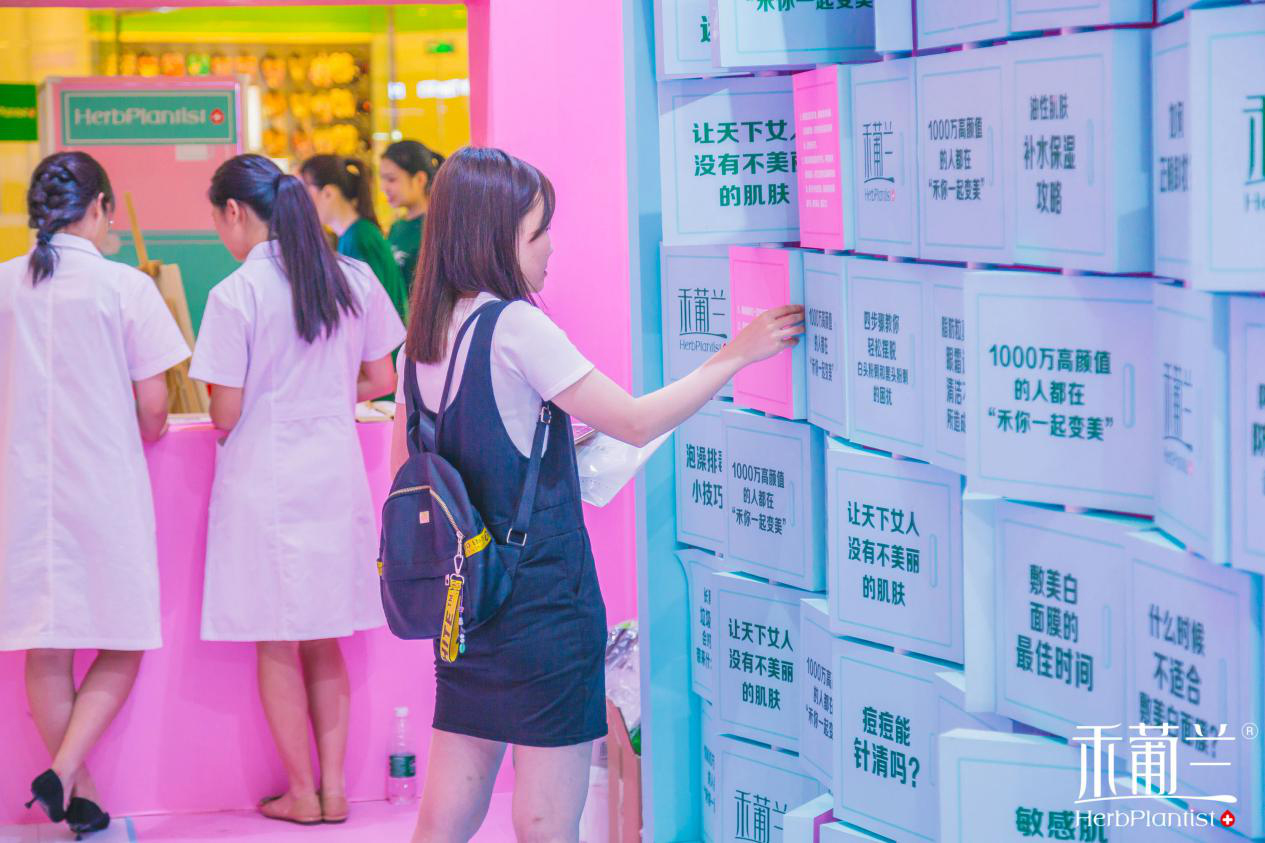除此之外,在暖心探秘区还有一面能够随意旋转的方块墙,在玩乐的同时带领禾粉绕开护肤误区,解锁正确护肤技巧,好玩又有“料”;清新可爱的布置吸引了众多禾粉前来体验和拍照。