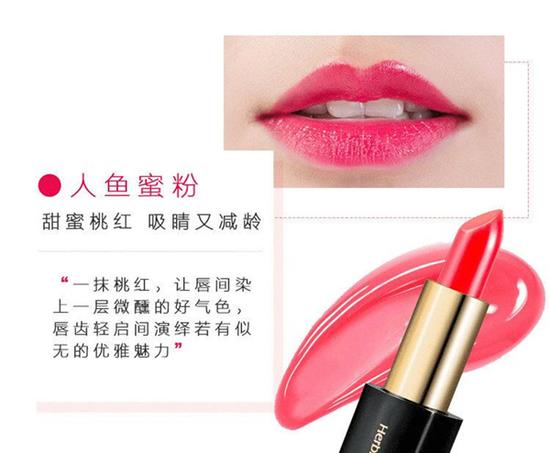 这款人鱼蜜粉,甜蜜桃红,对于强势但又想来把优雅的妹子,绝对是尤物。瞬间让你死白的嘴唇恢复好气色,拥有宅男杀手好唇色。
