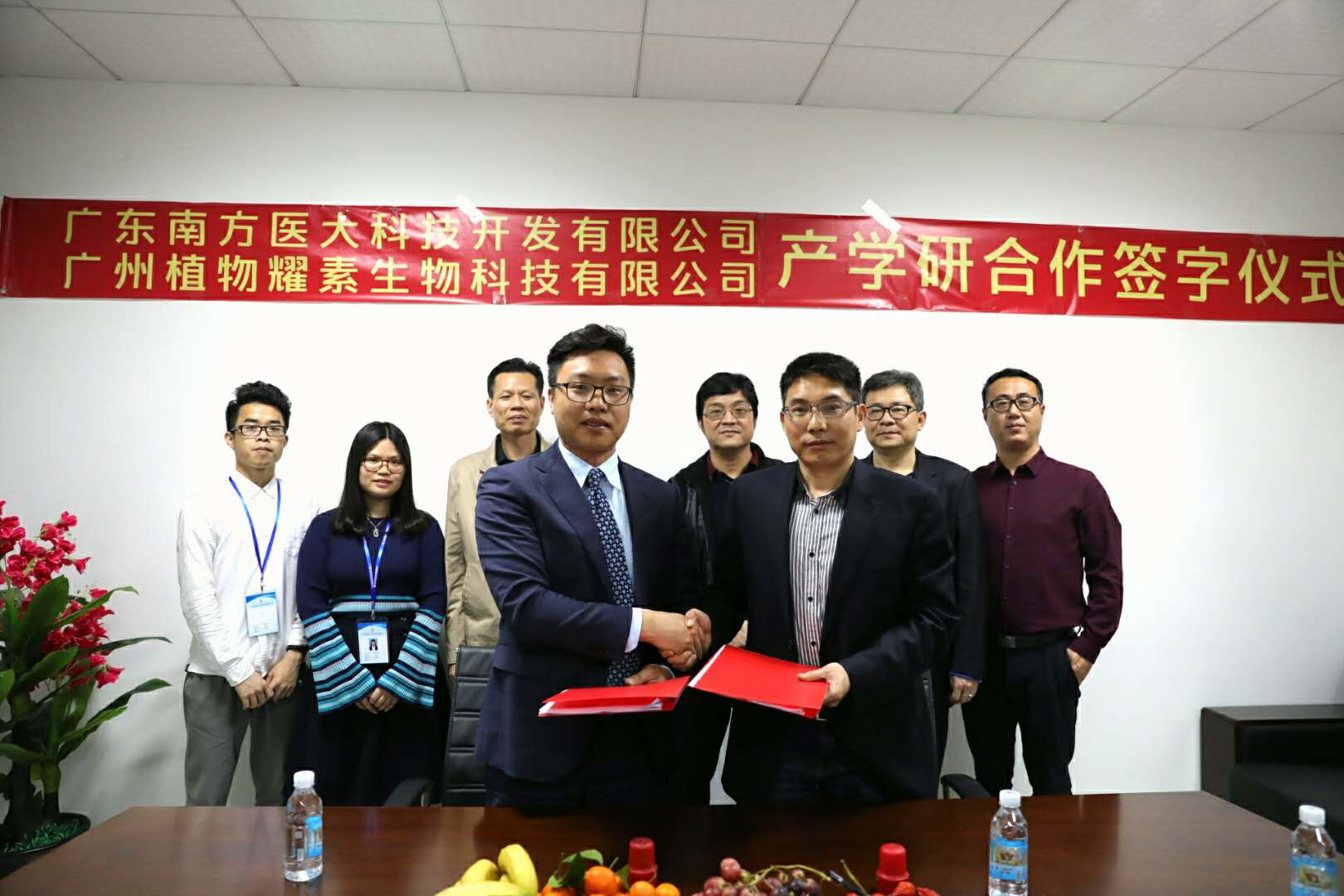 3月1日,雨姿旗下品牌植物耀素与南方医科大学产学研战略合作全面升级签约仪式在南方医科大学校本部举行。南方医科大学相关部门领导陈映斌、戴开金,欣所罗门董事长黄志雄,雨姿联合CEO沈海波,植物耀素总工程师许仲田,植物耀素创始人何晓松等相关人员参加了仪式。