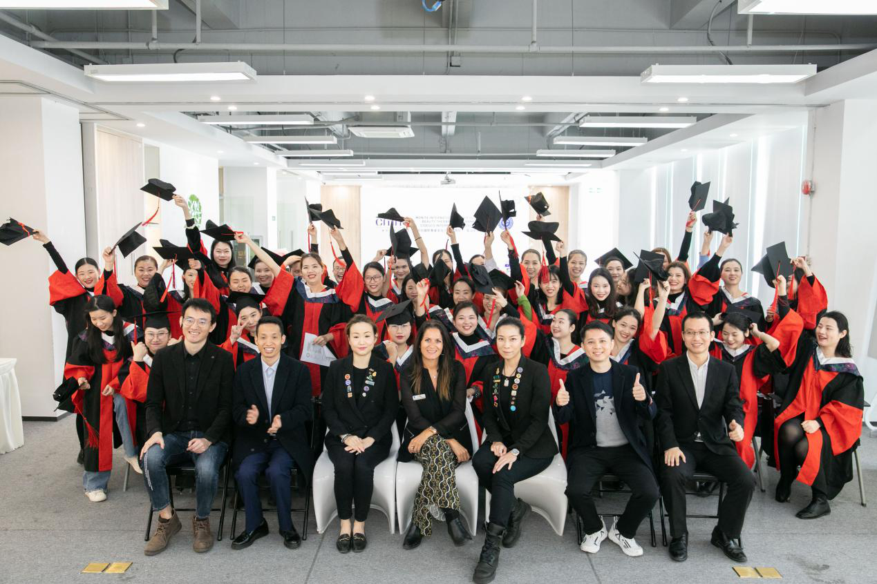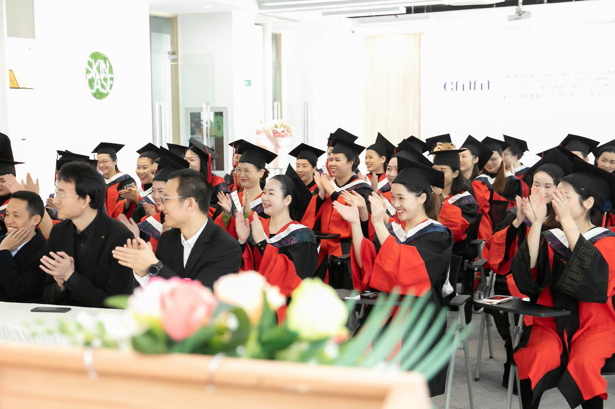 禾葡兰联合CEO张茗程,禾葡兰总经理陈朝波,禾葡兰副总经理张耀宇,禾葡兰人力资源总监吴承庆等领导,CIDESCO国际考官Ms Patricia Marie Causon老师,CIDESCO资深培训导师邓嘉欣老师、林殷妁老师等共同出席了毕业典礼,祝贺禾葡兰美肤导师成功获取圣迪斯哥美容博士文凭。